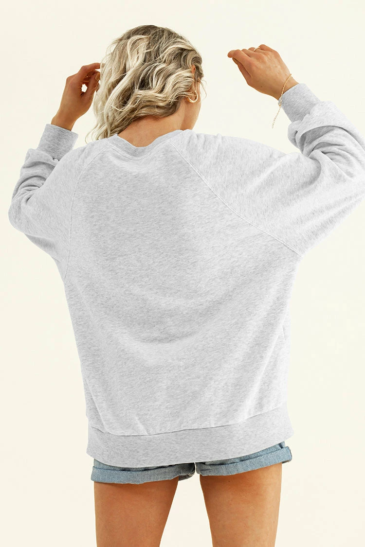 Keep your look comfy but stylish this season with the Charmed Gray Crewneck Sweatshirt featuring ‘Good Vibes Only’ print. Pair with relaxed bottoms and slides for your weekender uniform.