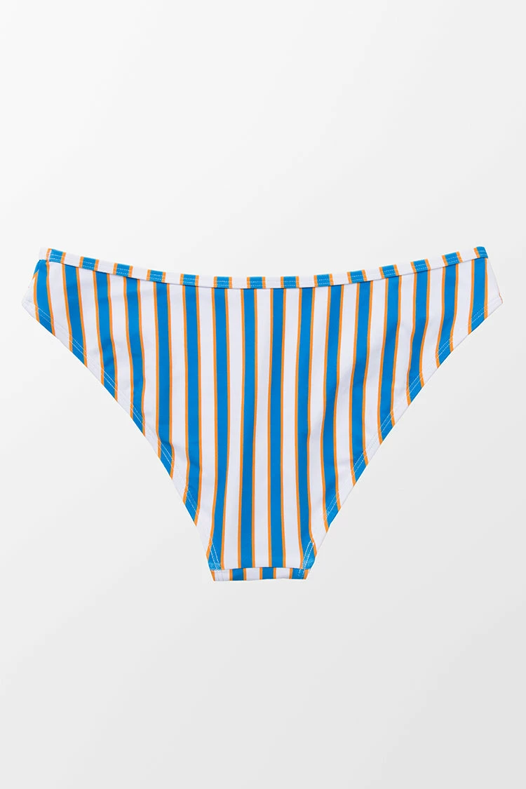 Look fabulous without sacrificing comfort in our Juniper Striped Low Waisted Bikini Bottom. The cheeky stripe print bikini bottom features regular coverage with a low rise.