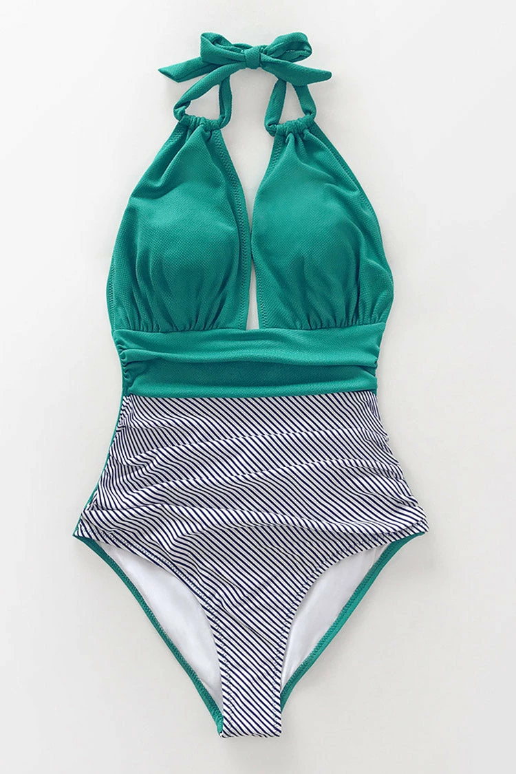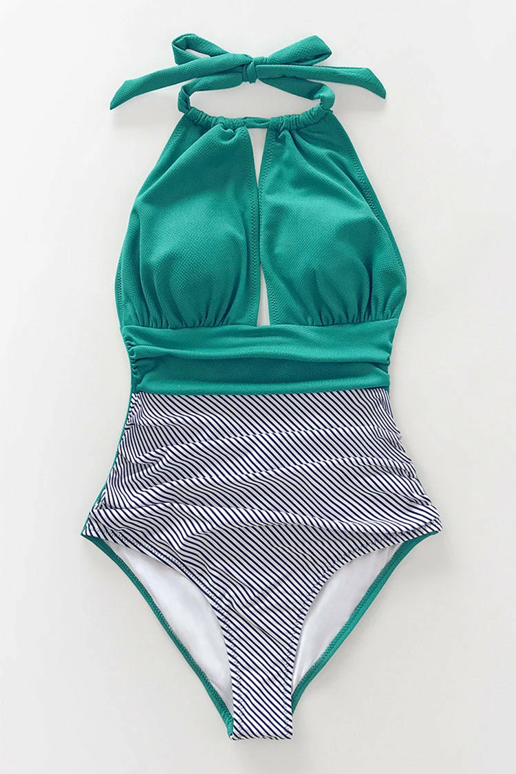 Look and feel your best in the AquaΒ Textured and Striped Halter One-Piece Swimsuit. This figure-flattering bathing suit contrasts a sunny mustard color with black and white stripes for a vibrant swim style. Ruching at the hips provides flattering tummy-coverage, while the self-tie straps let you adjust the fit and bust support.