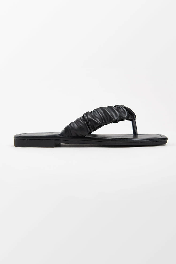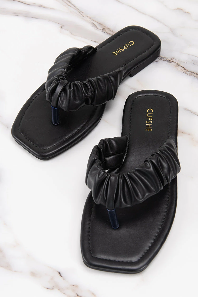 Our Black Orchid Ruched Thong Sandals are women’s slip-on sandals allow for quick and easy wear; Thong strap style for a comfy fit and on-trend look; Great with both dressy and casual ensembles.