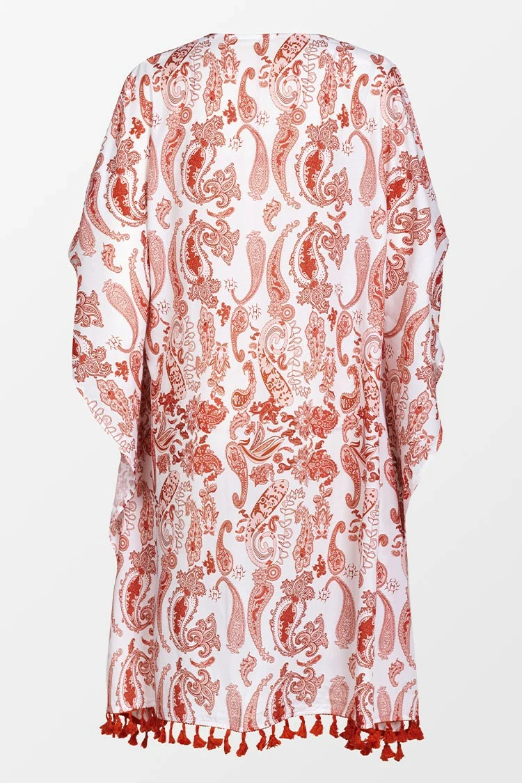 Add a bit of glam to your next look with the Katelin Paisley Front Open Split Cover Up. This front open cover up has tassels on the bottom which will make you more cute!
