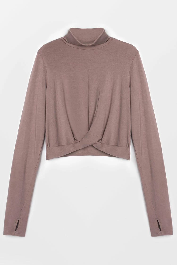 Add this Fiji Twist High Neck Sweatshirt to your closet today! Front twist design, and high neck design bring a high-impact style to a sweatshirt for a comfy and cozy look.