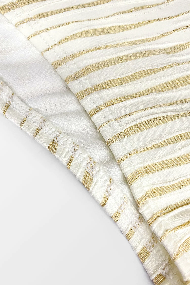 Spice up your swimwear collection and add some sparkle to your style with the Lurex Texture Deep Plunge Halter One Piece Swimsuit. The sultry one piece has a plunging halter neckline that breathes into an open back silhouette.