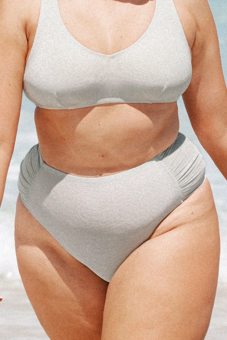 Be our sexy goddess wearing this Madisen Ruched Plus Size Bikini Bottom. Features with mid waist and ruched on both sides. Pair it with our matching top.