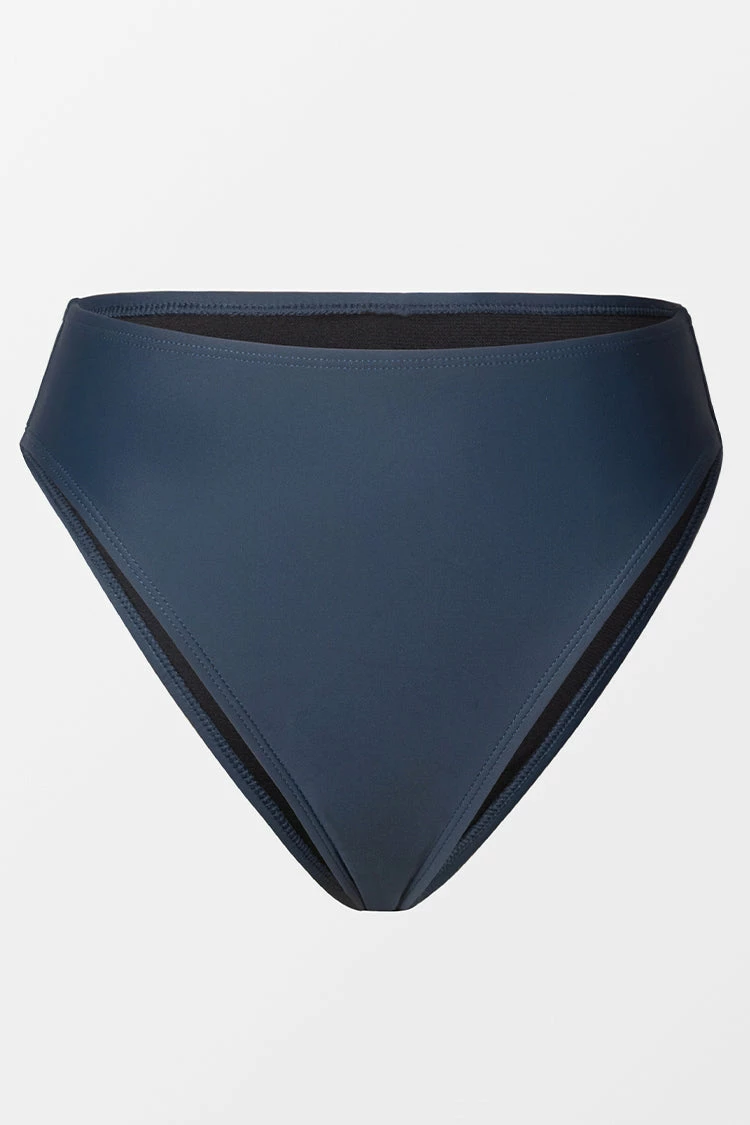 A high-waist bikini bottom with cheeky bum coverage, the navy bikini bottom lengthens your legs and accentuates the curves.