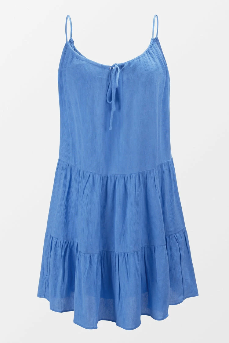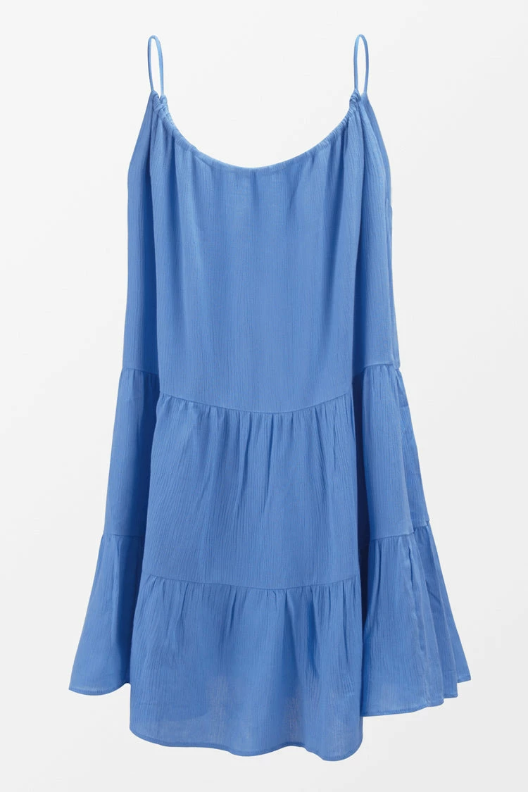 Add this Caroline Blue Ruffle Slip Dress to your summer wardrobe. Featuring thin straps with ruffle hem and keyhole back detailing, It’s totally a summer-worthy look.