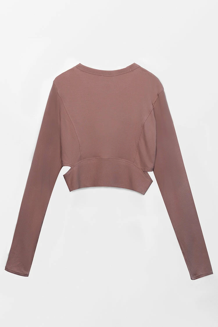 Whether worn alone or layered, the Cherise Cut-out Side Crop Sweatshirt is seriously sporty and sexy! This crop top starts with a stretchy, ribbed knit construction that forms a high round neckline, long sleeves, and a fitted bodice perfect for any outfit!