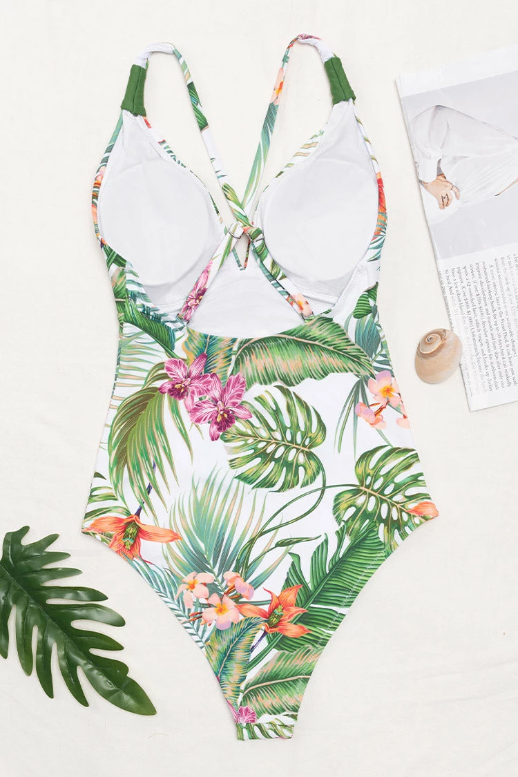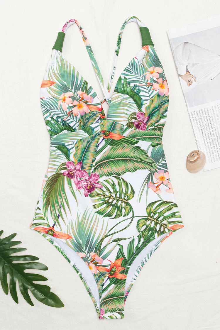 Feel cute and sexy in our Esme Tropical Crisscross One Piece Swimsuit! Features a tropical floral print with adjustable wide straps and crisscross back detailing.