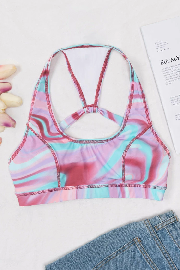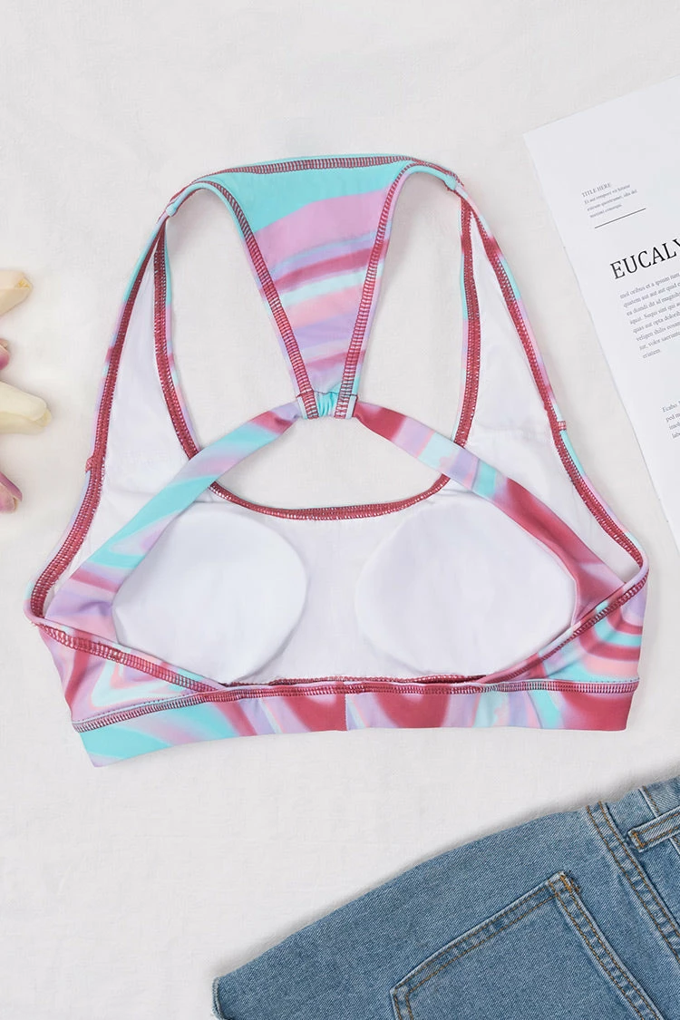 Work up a sweat in style, or spend the day lounging in the Amor Marble Criss Cross Sports Bra. Features with scoop neckline and crisscross on the back. Wide elastic band for better fit.