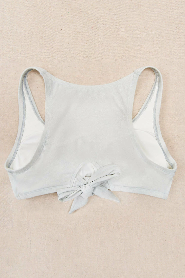 Be our sexy goddess wearing this Madisen V-neck Cut Out Tie Plus Size Bikini Top. Features with v-neckline on the front and cut out on the back, back tie for easy adjustment. Pair it with our matching bottom.