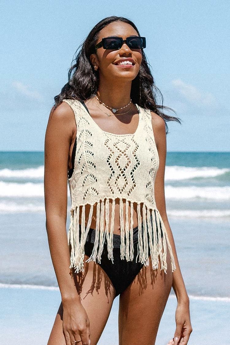 This Nikky Round Neck Wide Straps Braided Tassel Cover Up is very fresh, the tassel design makes the cover up more novel and light, it’s your best choice on your vacation.