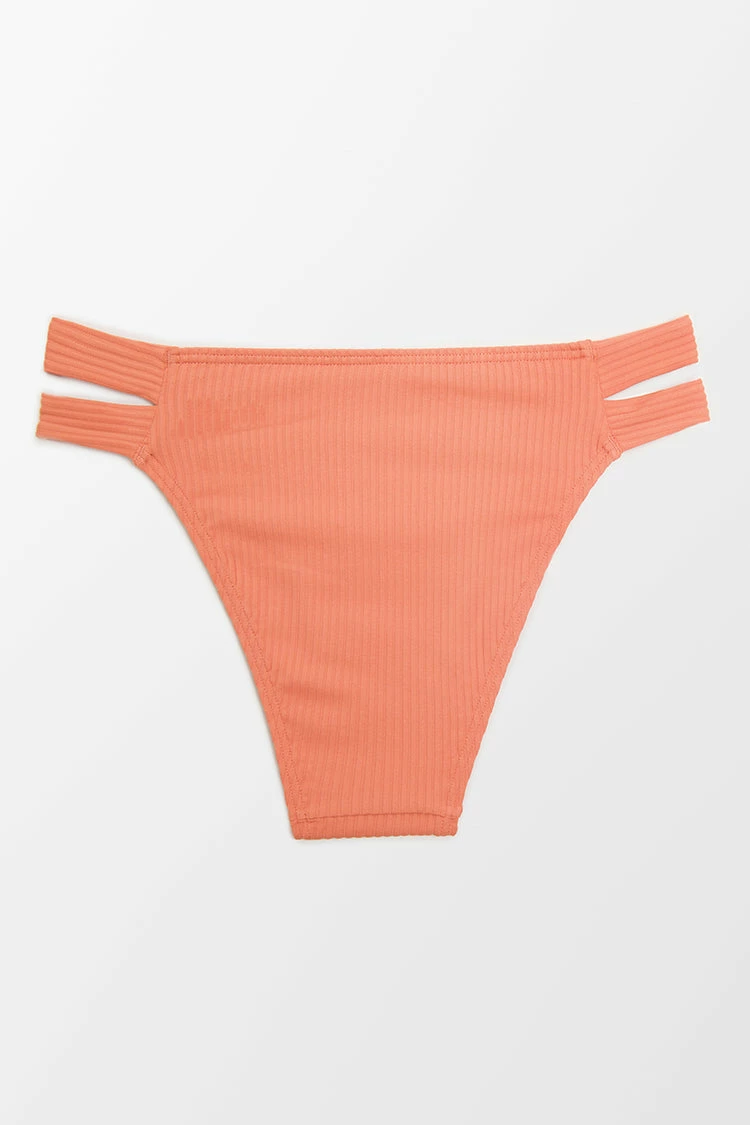 Soak up the sunshine all season long with the Ribbed Sunburst Rib Side Tab Hipster Bikini Bottom. A stretchy, ribbed fabric shapes this cute bikini bottom with side tabs and high leg, cheeky coverage.