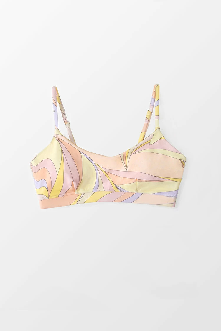 The Orange Blossom Abstract Print Sports Bra is perfect from sunset to sunrise and everywhere in between. This silhouette is both supportive and comfortable for your day to day activities. Pair with the Orange Blossom Allover Graphic Leggings.