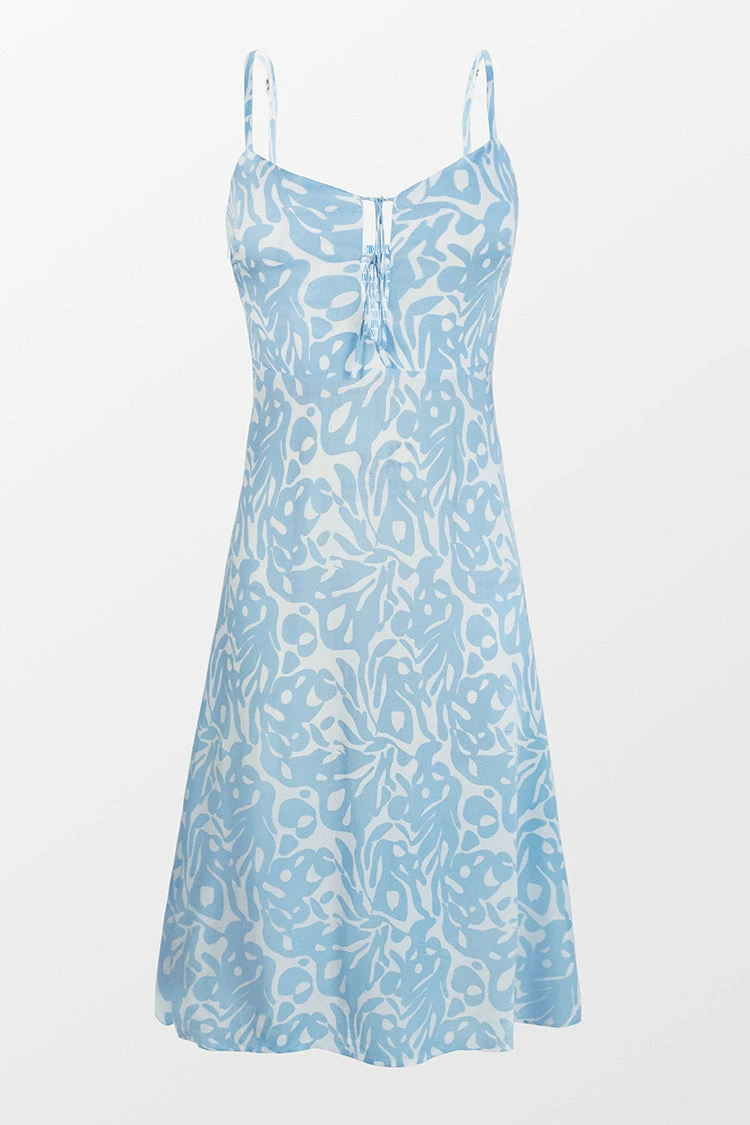 Make you comfy in our Addilynn Monochrome Print Tie Front Slip Dress. This dress features a monochrome print with thin strap and split side detailing. Tie front and smocked back design bring the cool vibes.