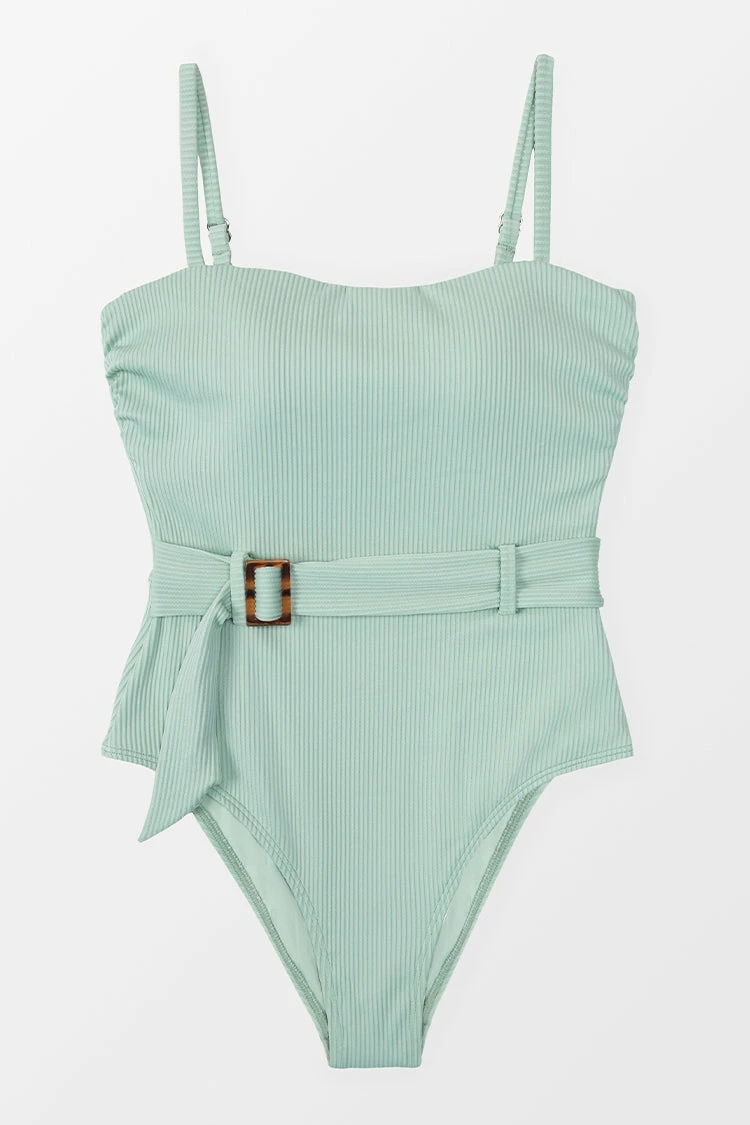 Anahi Green Square Neck Belted One Piece Swimsuit will refresh your swimwear collection. Features with square neckline on the front and strappy detail on the back. There’s a belt on the waist for decoration.