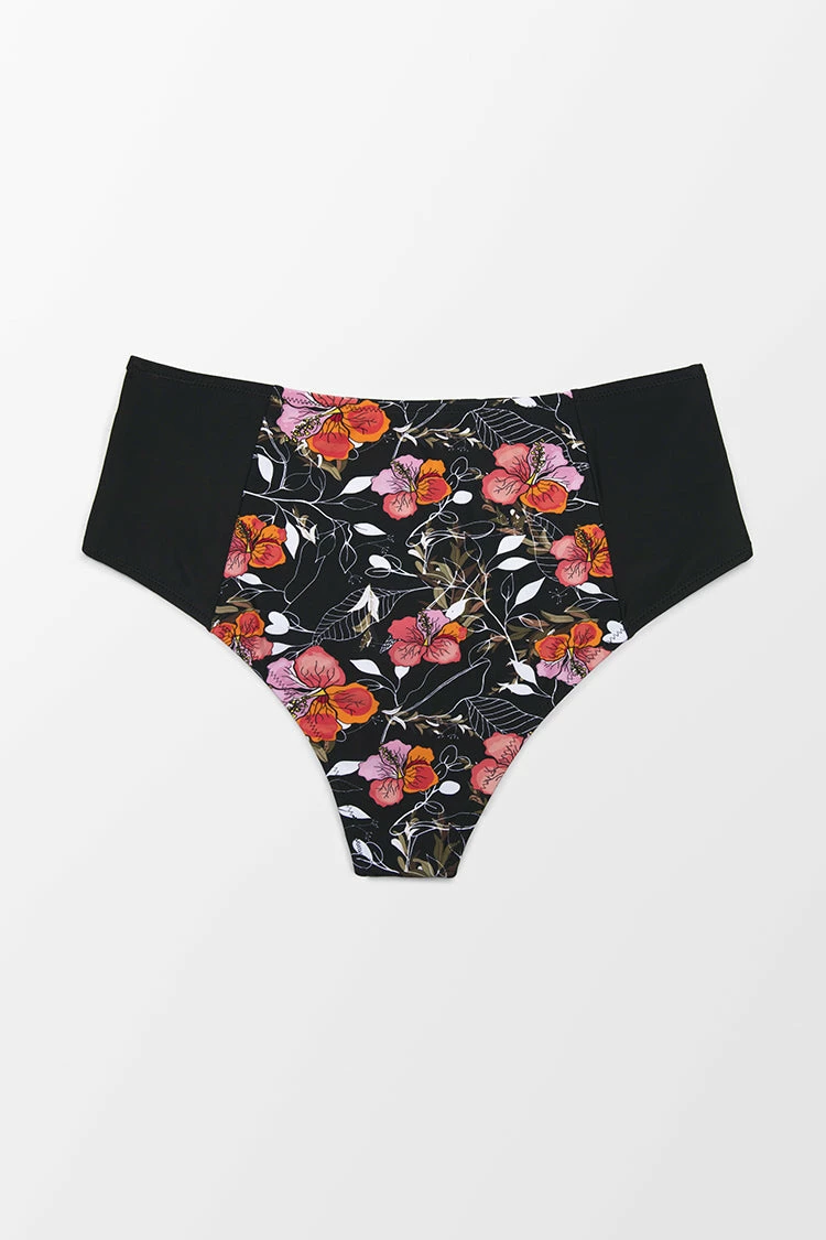 Get ready to catch waves in the Black Floral High Waisted Plus Size Bikini Bottom. High waisted bottom for a flattering tummy coverage. Mix and match with our Black Floral Plus Size Bikini Top for a perfect bikini set for the beach.