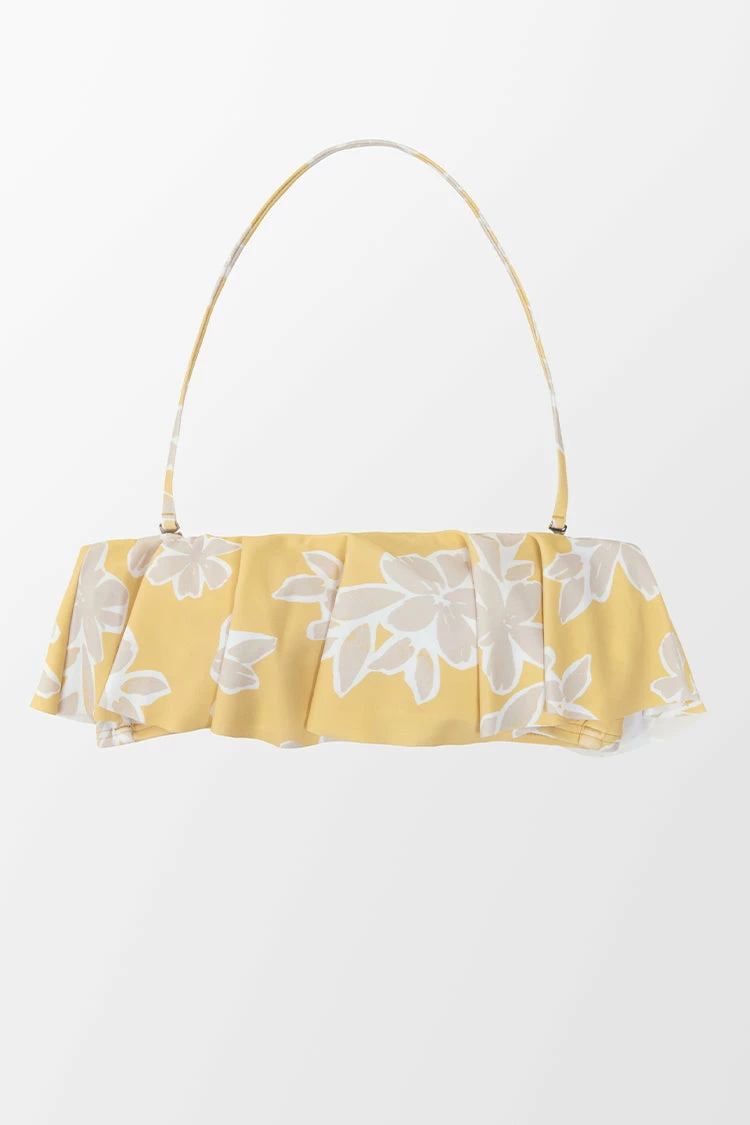 Bring the heat to your next vacation in our Delicate Expressions Flounce Bandeau. This bikini top features a ruffled hem and halter neck. Pair with the Delicate Expressions Cheeky High Waist Bottom.