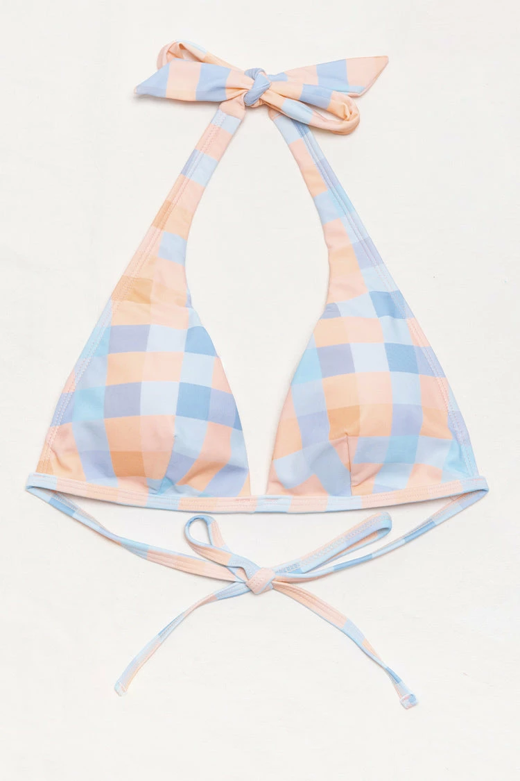 Our Jaida Checkered Back Tie Halter Bikini Top will refresh your swimwear collection. This bikini top offers you plenty of support with halter back tie. Matching with Jaida Checkered High Cut Bikini Bottom.