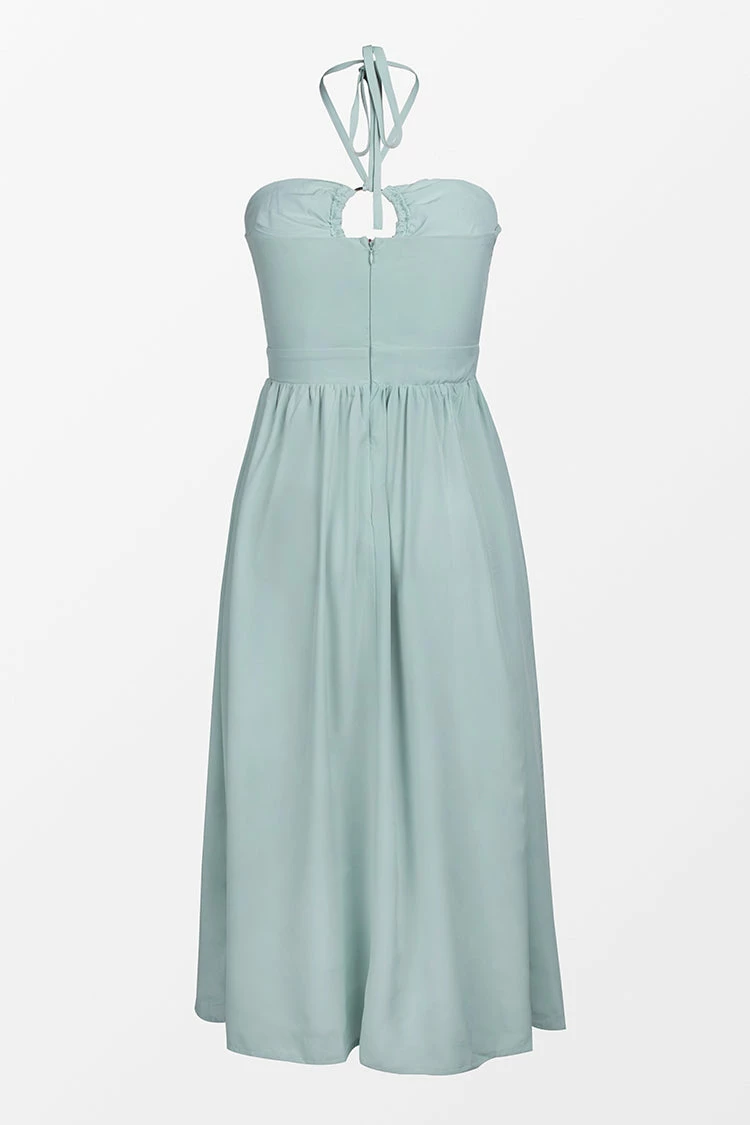 A hot summer day calls for Oakleigh Green O-ring Halter Tea Length Dress. Featuring a o-ring front detail, halter neckline, this dress will for sure be your next favorite this spring and summer seasons! Pair this dress with some sandals and a hat for a more casual look.