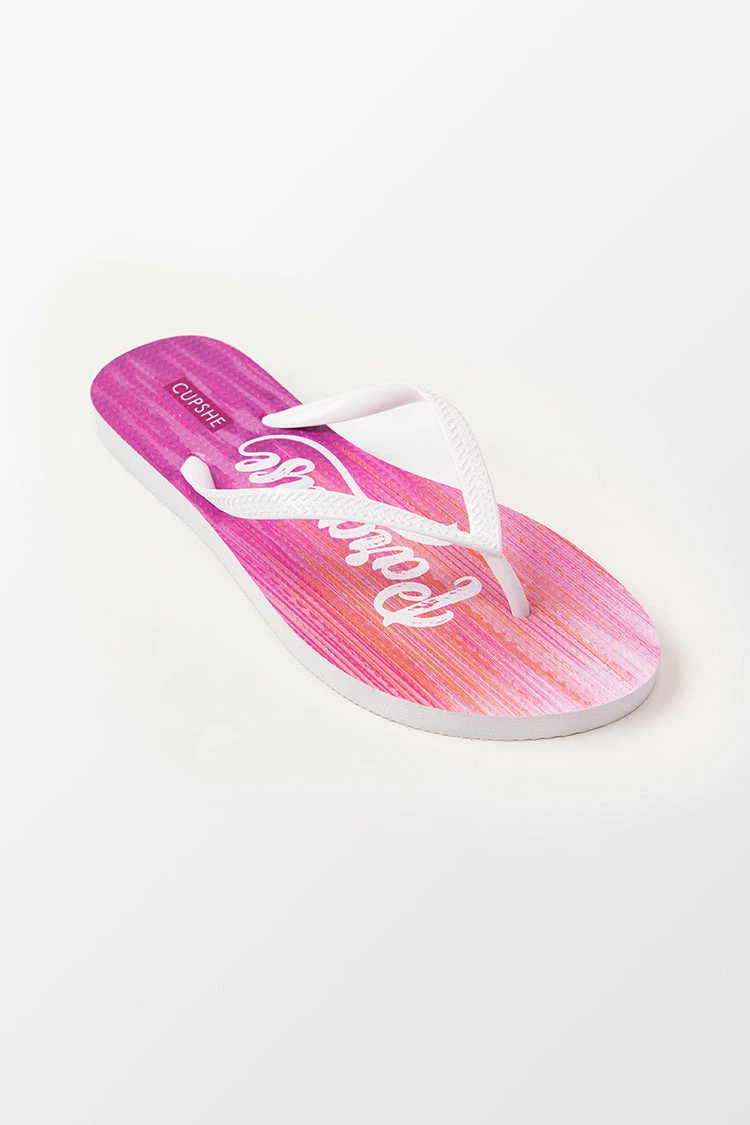 Our Sunrise Gradient Flip Flops is a classic flip-flop sandals make for a summer wardrobe staple; Easy slip-on design with open toe and strapless back; Comfy sole with no heel for easy wear; Gradient pattern design meets your swimsuit and summer outfit matching needs.