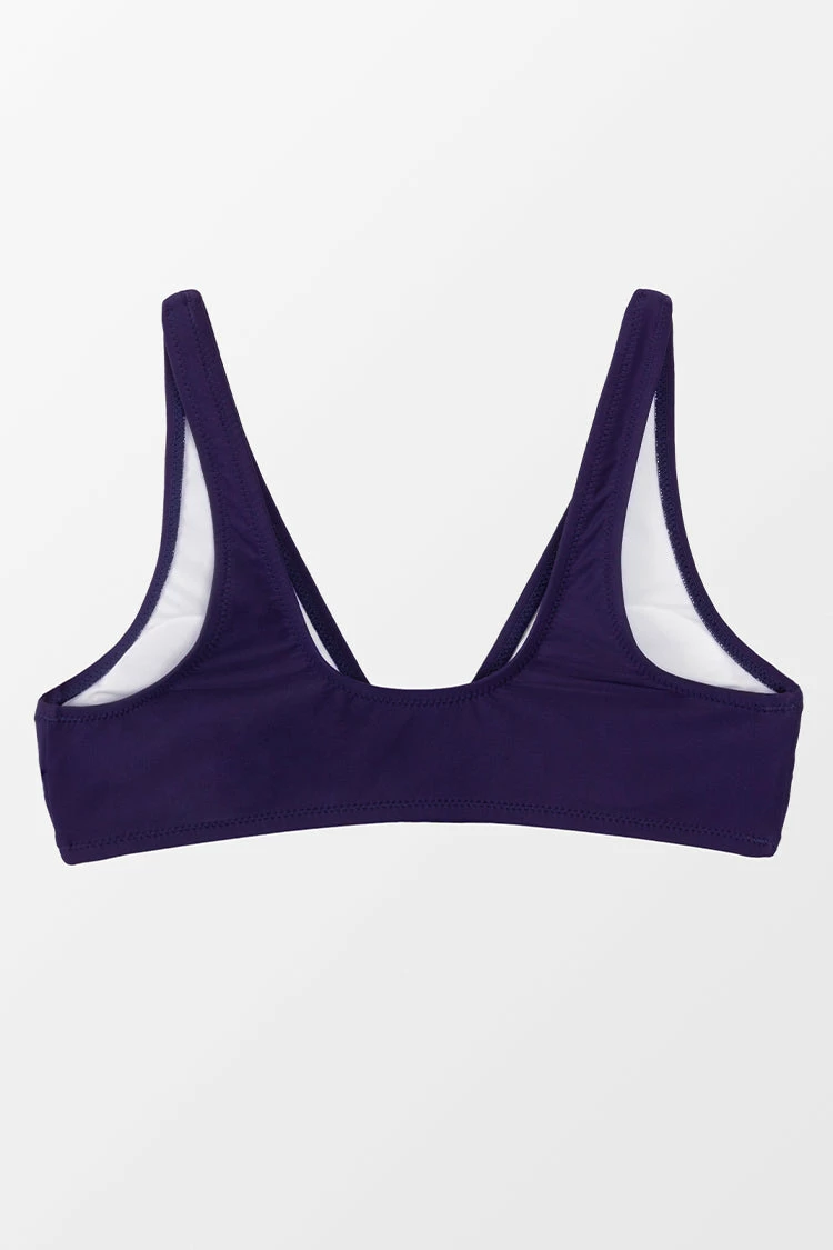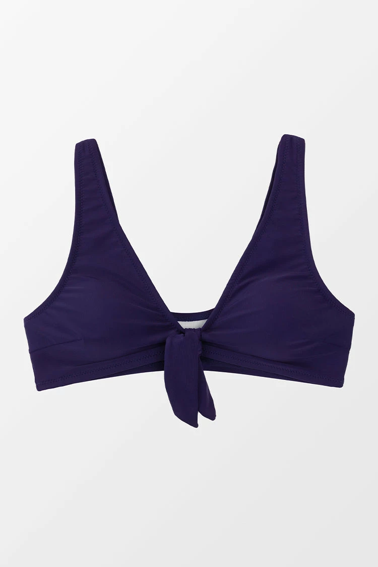 Refresh your summer wardrobe with this Alia Navy Knotted Bikini Tank Top. The tank bikini top has a v-neckline and removable padded cups for a stylish and comfortable fit. Pair it with with a cute bottom.