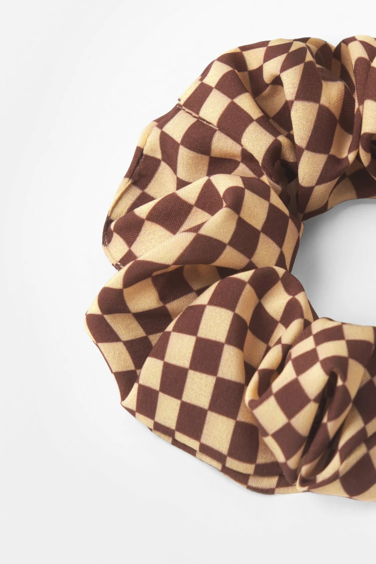 Our Papaya Brown Gingham Ruching Hair Tie adds a little touch of vintage to your look. The complexion of the classic gingham design and the eye-catching brown make this hair tie is both casual and fashinonable.