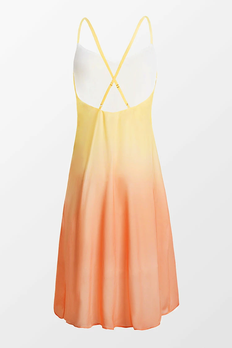 As soft as a mountain breeze and sweet as ice cream, the Heather Ombre Print Adjustable Straps A-Shape Dress is a total treat in everyday proportions!