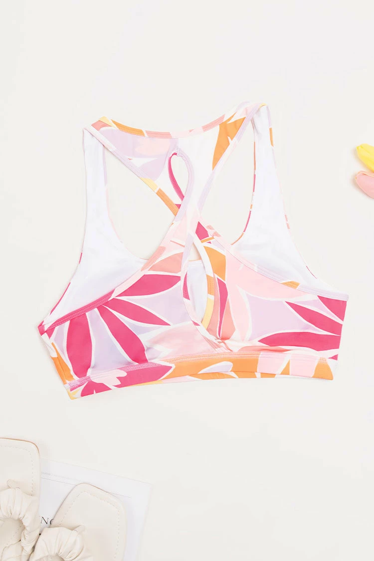 You can lounge in style even at home with the Drini Abstract Print Crisscross Back Sports Bra. Features with scoop neckline on the front and crisscross on the back.