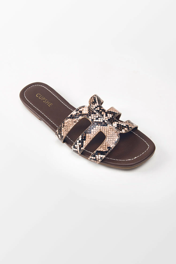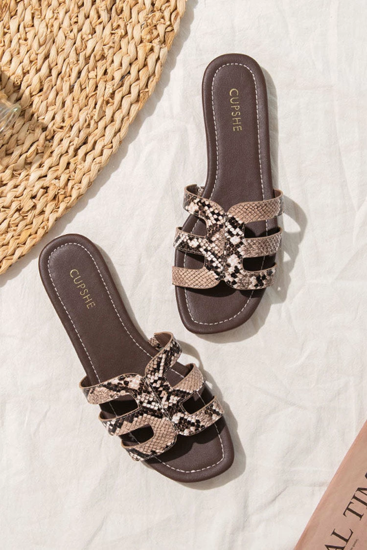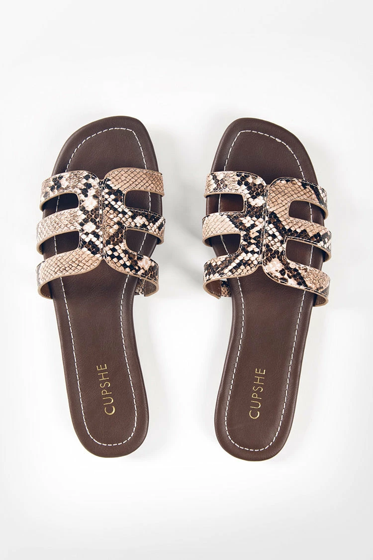 Our Forbidden Fruit Snakeskin Cutout Slide Sandals is a snakeskin Print Slide Sandals with low heel design; multi-stripe style for a comfy fit and on-trend look; Open-toe design offers easy wear and lasting comfort; Easy to pair with a variety of outfits for versatile styling options.