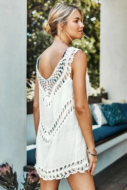 Best Sale 𧨠Cupshe White Crochet Sleeveless Tunic Cover Up π