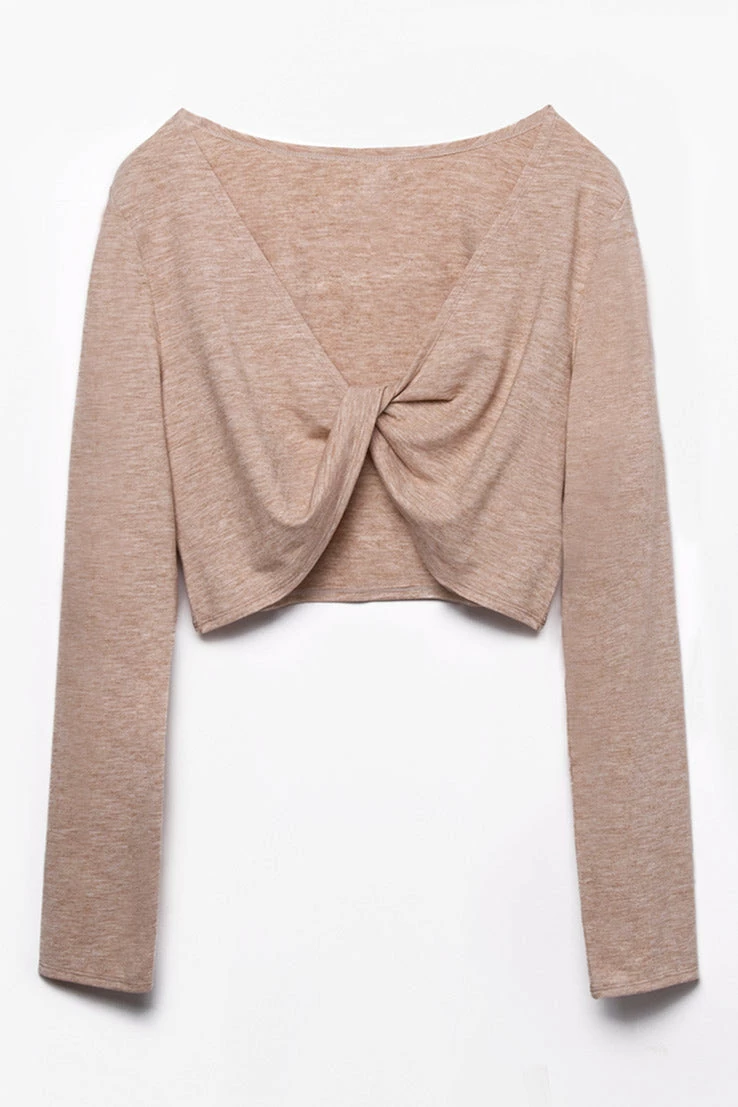 Bring the drama with this Wildpoppy V-neck Twist Crop Sweatshirt. Featuring a twist-front design with elasticated long sleeves and deep v-neckline.