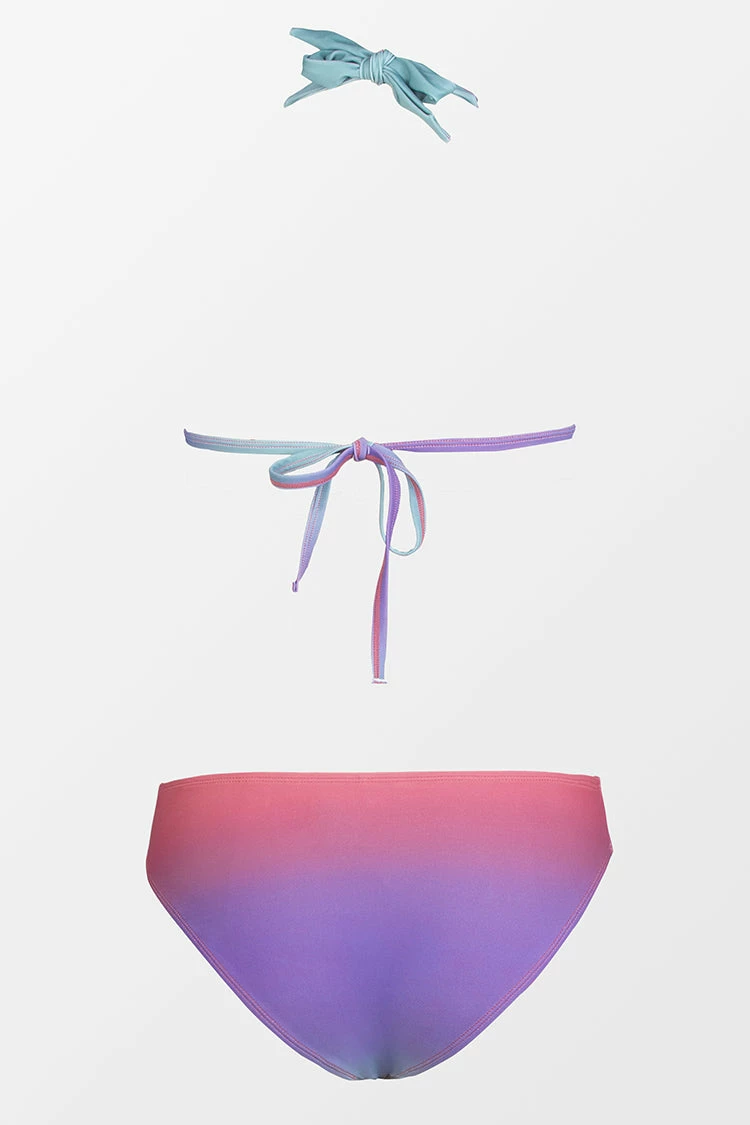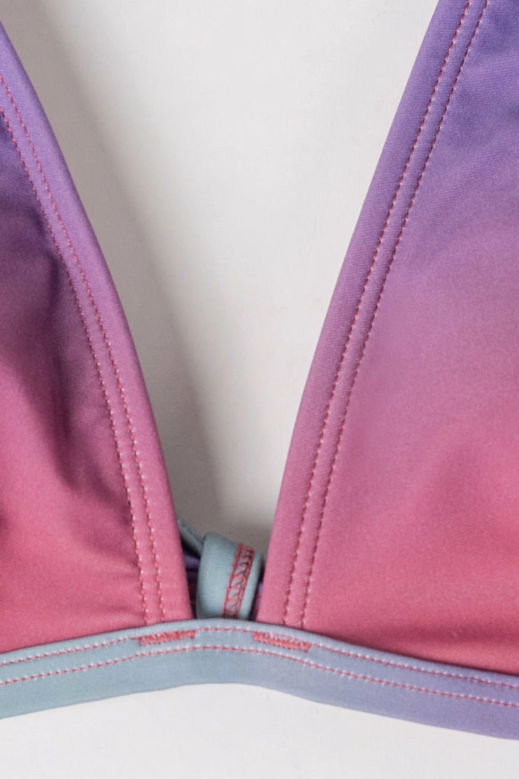 Classic silhouette with a customizable fit, the tall halter bikini top lets you adjust your best fit with adjustable halter ties and a back tie. The ombre print reminds us of a beautiful sunset by the ocean.
