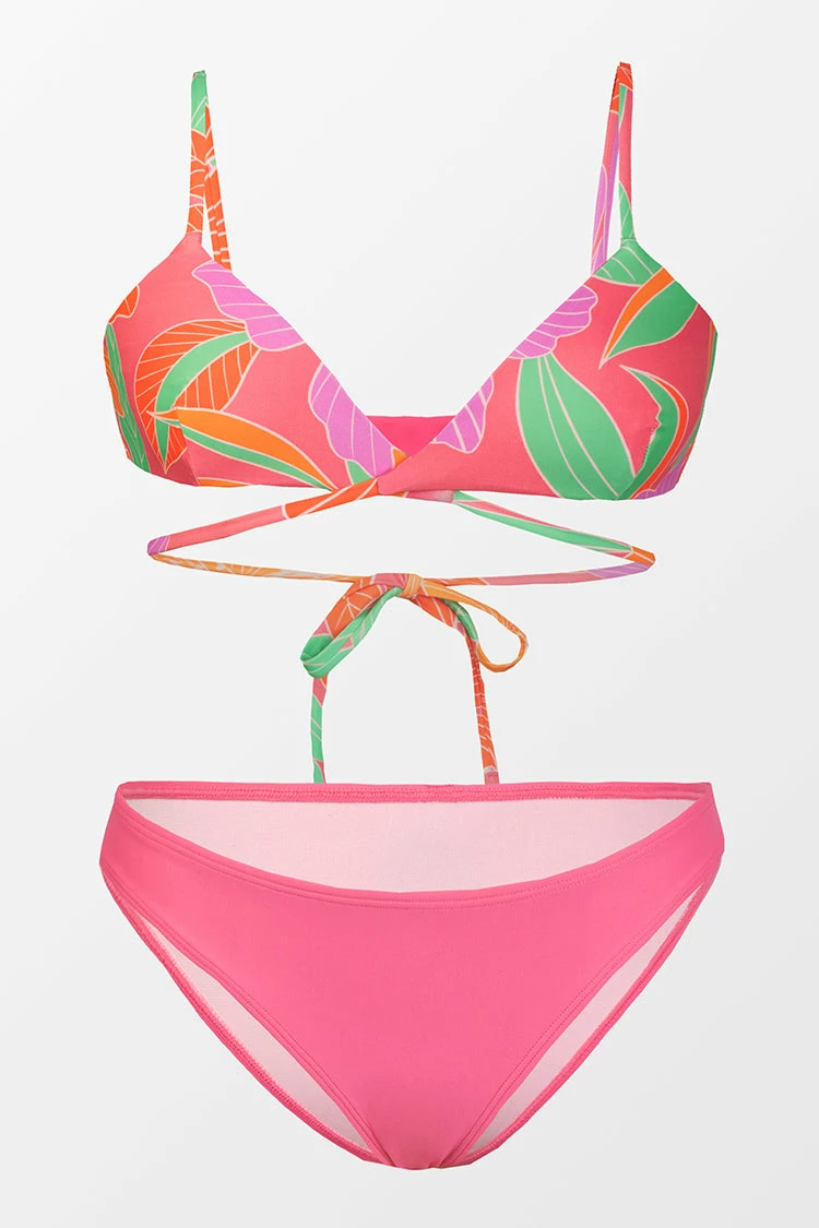 Elevate your new-season looks with the Floral Impressions Reversible Triangle and Hipster Bikini Set. The added string wrapping around the body with a back tie creates this ultra-sexy triangle bikini top. Pair with the matching solid-color hipster bottom or mix patterns if you’re feeling daring!