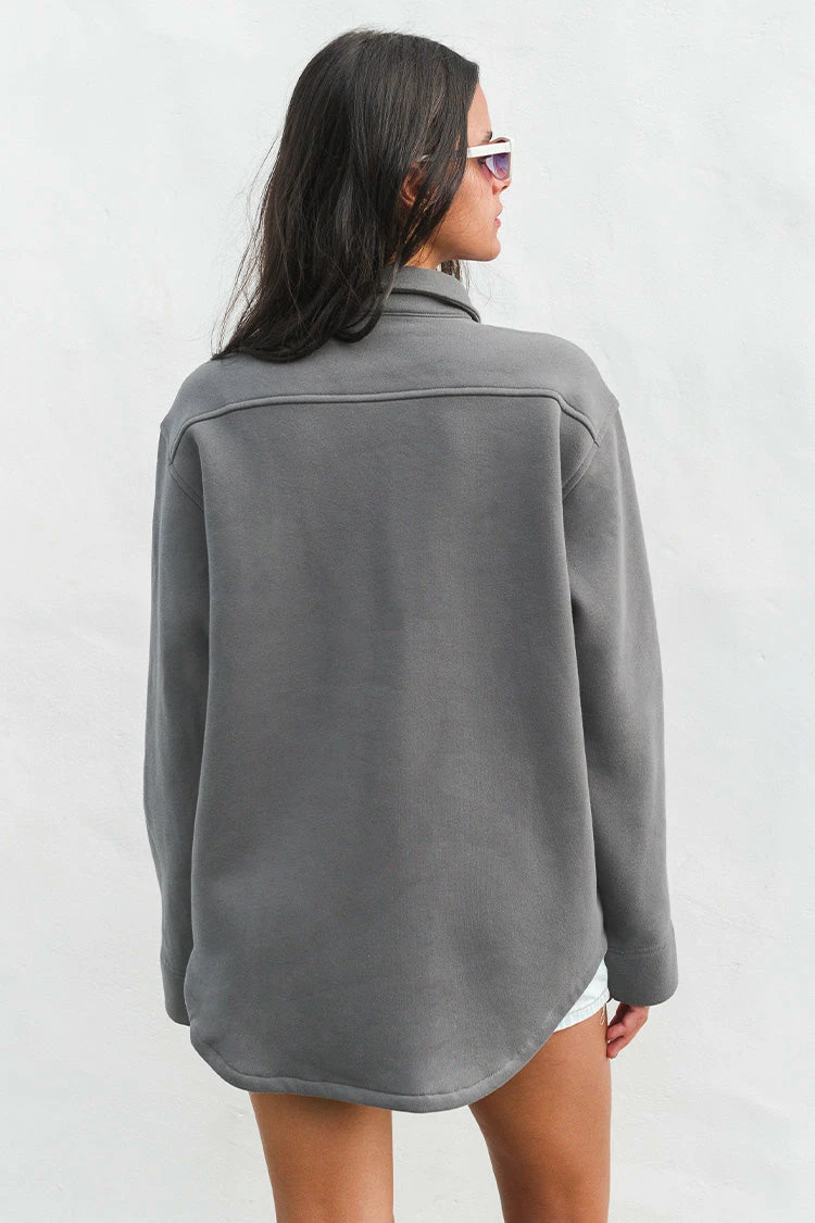 We are obsessed over this Running Grey Long Sleeve Button-up Shirt to add to your vacay wardrobe. Featuring long sleeves with left pocket and buttons front detailing.