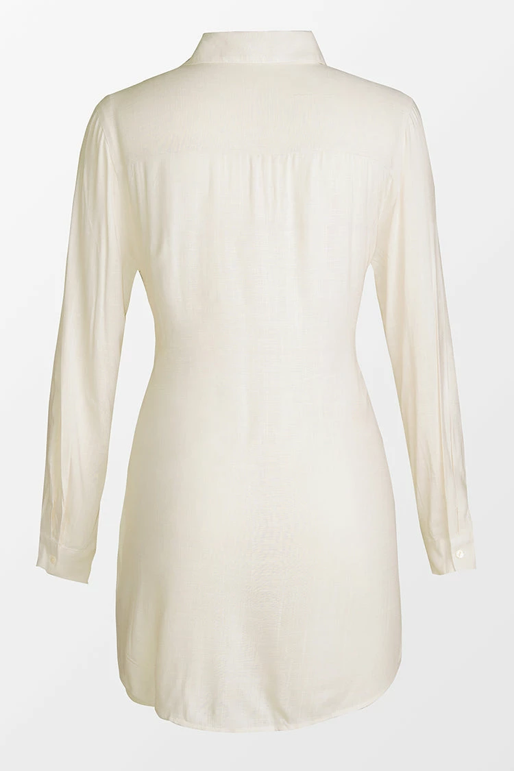 This Savanna Long Sleeve Button Shirt Dress has a unique waist design, the upper body is exquisite for office lady, and the lower body design shows a unique fashion taste. This dress is the best choice for urban beauty.