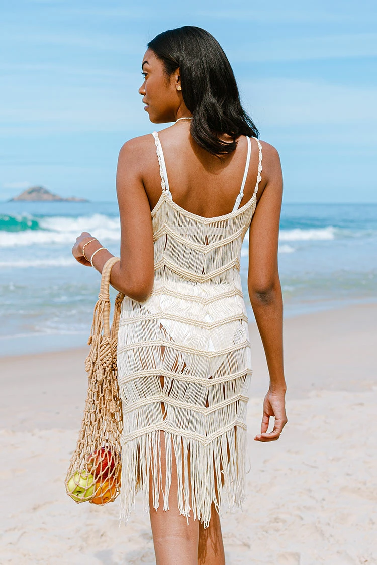 Be our sexy goddess in this Tyler Crochet Tassel Slip Cover Up. Full body crochet craft, sexy close-fitting tailoring. Irregular hem adds more fun!