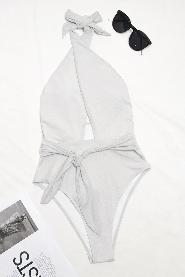Escape the ordinary in our Georgia Cross Halter Tie Waist One Piece Swimsuit. Features a fun front cross with halter design. And a self tie belt to accentuate your waistline.