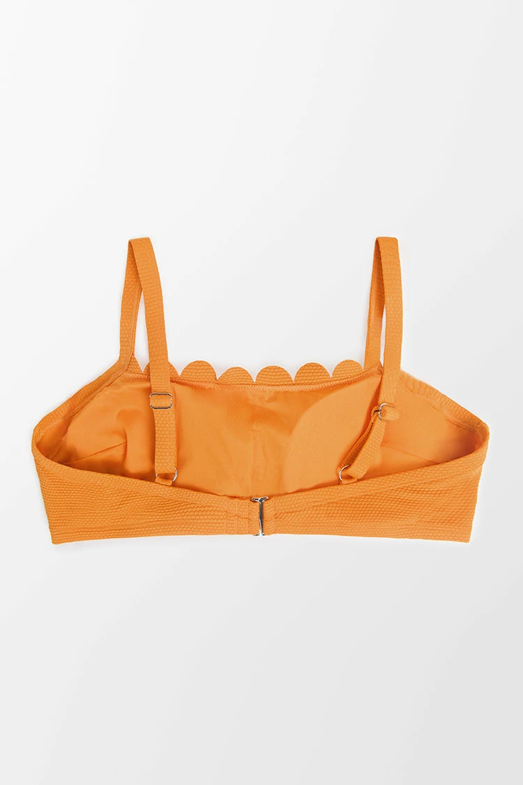 Mayra Scalloped Back Hook Plus Size Bikini Top is everything you need for a beach getaway. Wide straps falls to a square neckline with scalloped on the edge, soft bralette and back hook for your comfort.Pair it with our matching bottom.