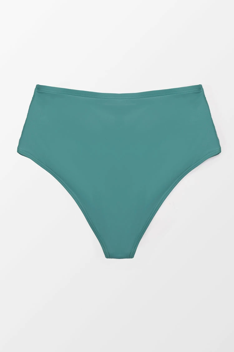 Enjoy the sun in Myah Green Ruched High Waisted Plus Size Bikini Bottom. The bottom features with ruched design and high waist for your comfort.Pair it with our Myah Tropical Wrap Criss Cross Back Tie Bikini Top.