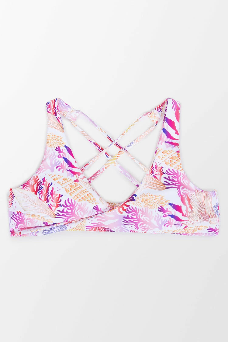 Get ready to show off in our Octavia Coral Print Twist Bikini Top. Features twist front and double crisscross straps with back tie. Finish the look with our Octavia Coral Print Bikini Bottom.
