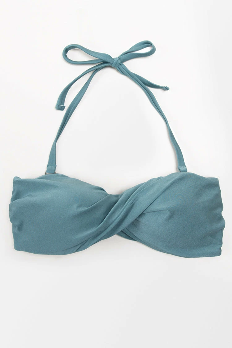 Stylish and sultry, this bikini top flatters with a twist front, back tie, and a removable halter strap. Pair it with Shangrila Solids Side Shirred Tab Hipster Bottom.