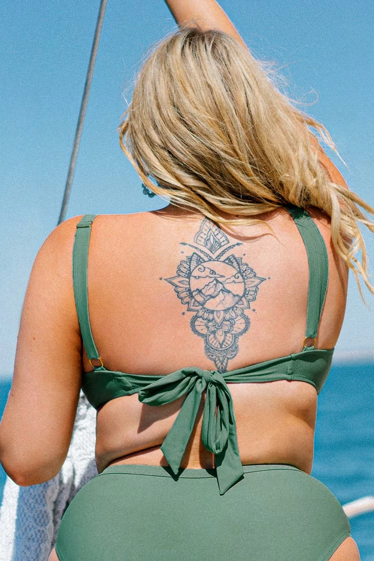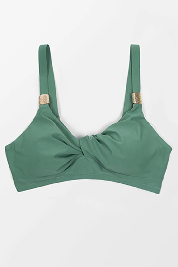 Always Looking cute in Braylee Green Twist Plus Size Bikini Top. Featuring twist front and tie back. Complete the look with Braylee Green Ruched Plus Size Bikini Bottom.
