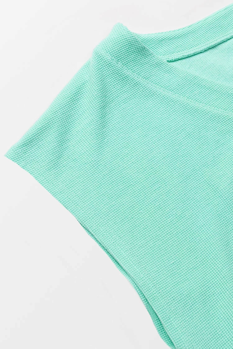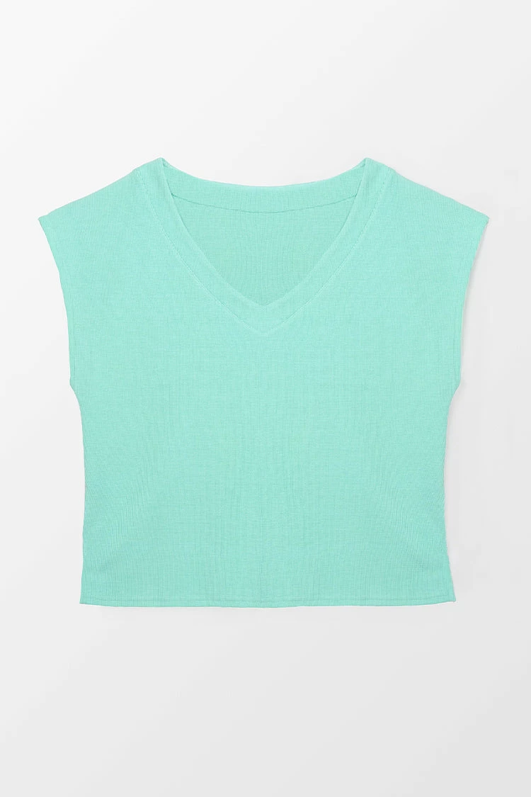 Living a stylish stay-at-home life with our Honey Green V-neck Sweatshirt. It has a flattering v-neckline, a loose bodice, and short cap sleeves. Pair with the matching pants for a complete look!