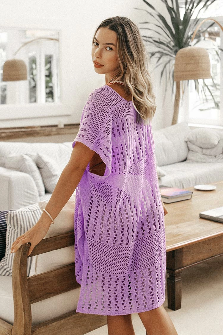 Get this Rachael Purple Plunge Cover Up to upgrade your wardrobe. Features with plunge neckline