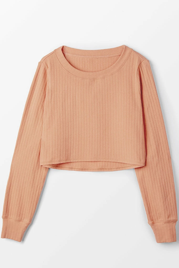 Enhance your collection with this Creamsicle Rib Round Neck Crop Sweatshirt. Constructed with long sleeves and a crew neck for a classic look, it features ribbed material for a comfortable fit.