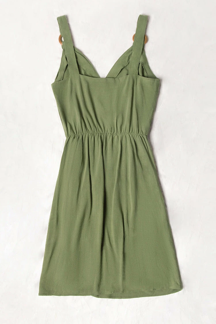 Our Jeanette Green O-ring Wrap Tie Waist Dress is going to rock your world. Designed in o-ring, it catches the slightest breeze with ease. Th V neckline and self tie wrap serve up plenty of sweetness.