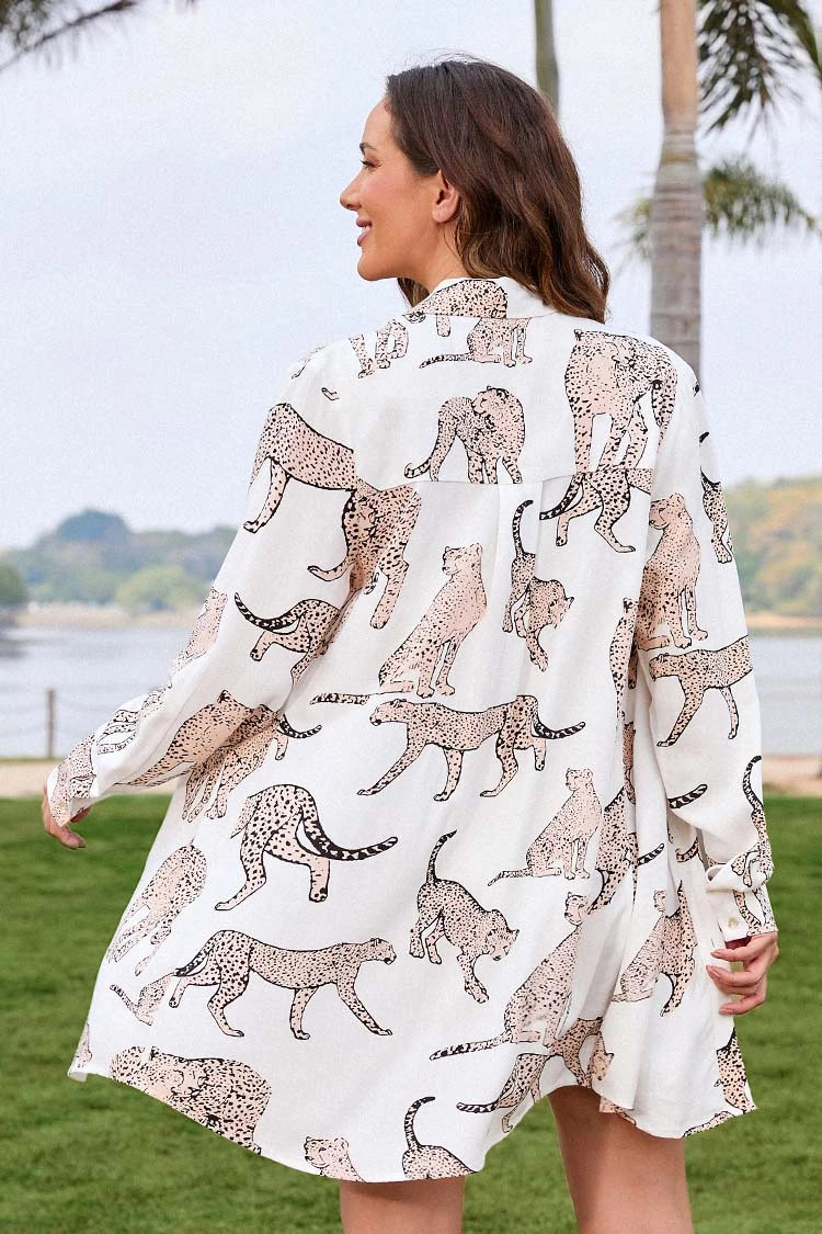 Look cute and comfy in the Kelsie Leopard Print Button Front Shirt Dress. This timeless style features a loose fit, shirt collar and buttoned front. Pair it with booties and your favorite coat for the ulitmate fall look.