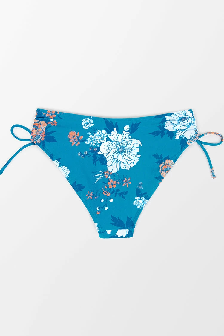 Whether you’re on a tropical beach or at a poolside working on your tan, you’ll love this Seafoam Garden Side Shirred Hipster Bikini Bottom. The blue floral print brings lively patterns to the style, which is guaranteed to impress.