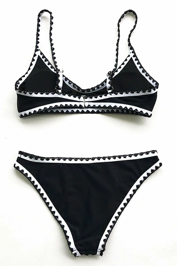 Featuring delicate crochet trim,Β this bikini set has removable padded cups and adjustable shoulder straps for an easy fit.
