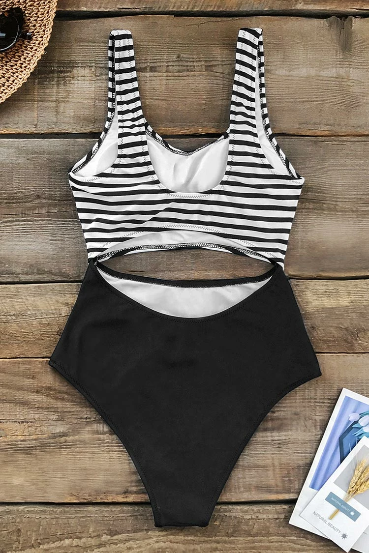 What is black and white and cute all over? Our Black and White Cutout One-Piece Swimsuit! Perfect for sunbathing on the beach or pair with your classic black trousers and heels. This swimsuit is so flattering for almost all occassions!